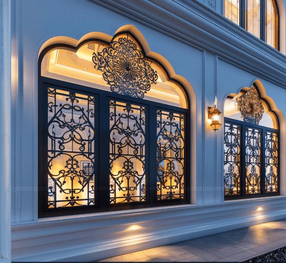 3. نوافذ حديد بنمط زخرفي