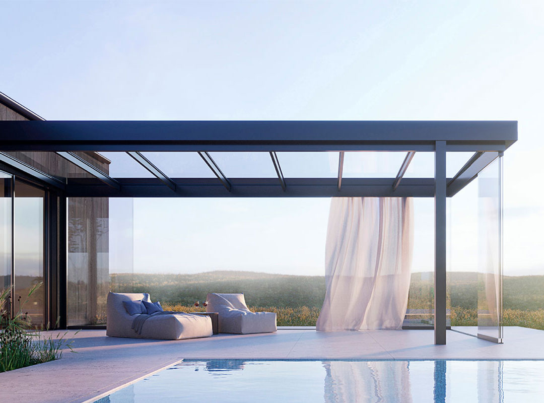 توفر رؤية مفتوحة للمساحة المحيطة، مع الحفاظ على الحماية من الأمطار والشمس.